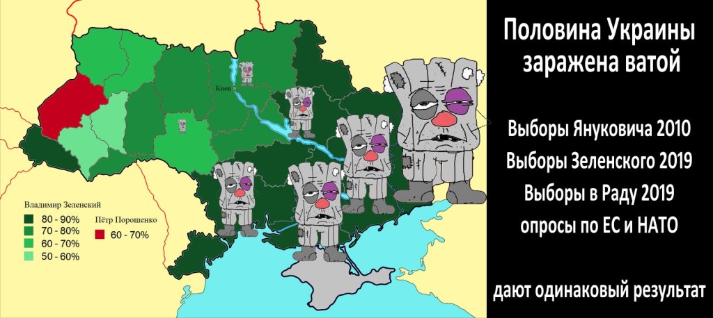 “Vata” means “vatnik“ a derogatory term invented by a Russian liberal for a pro-Putin type. In Ukraine however, it came to mean anyone who holds views that do not fall in line with the nationalist position.