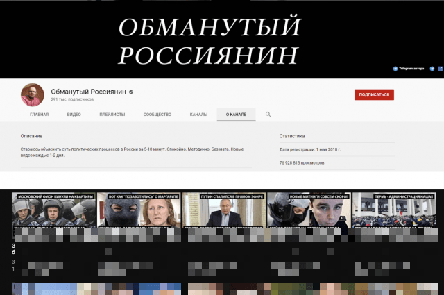 The Обманутый Россиянин is still on YouTube. The above exposé did not deter him from Vlogging. Even though the article I discuss here is from January, YouTube tells me, the latest video was posted 20 minutes ago. The channel seems to play digests of liberast videos. You know the drill boys, vote his shit down and say hello to SBU”