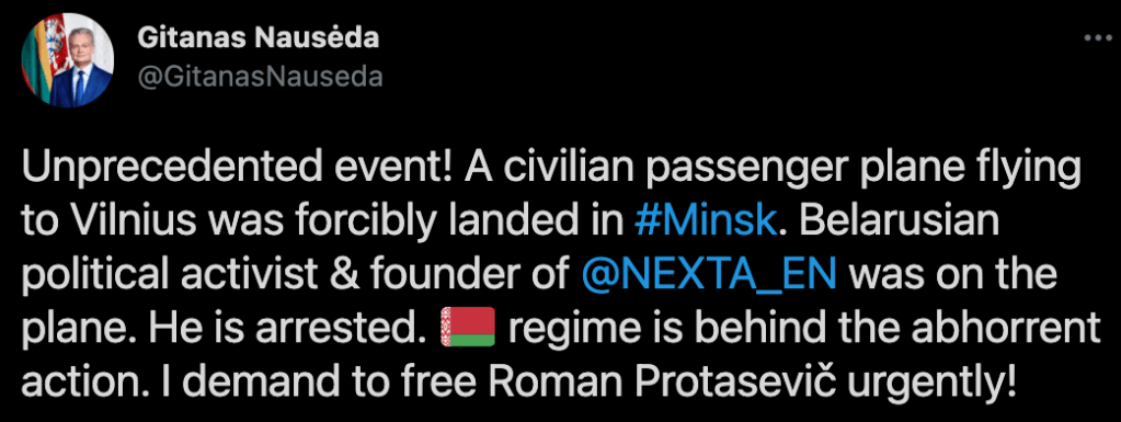 Roman Protasevych, the founder of Telegram channel NEXTA was arrested in Minsk. He was on board of a Ryanair flight from Athens to Vilnius. The plane landed in Minsk following a bomb scare. The passengers were taken off flight after which Protasevych was arrested…