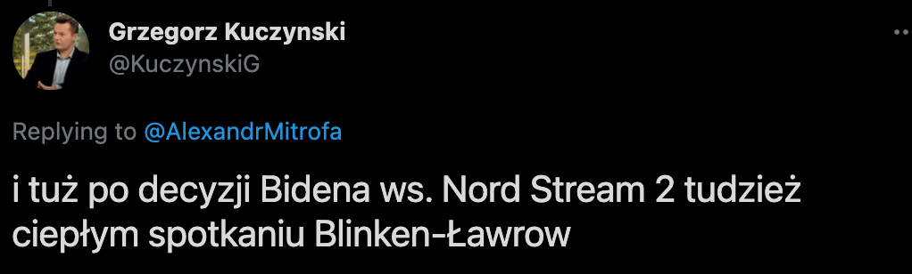 I don’t know who this Polish gentleman is but here is what he says (my free translation): And this after Biden’s decision on the Nord Stream 2, that is a warm up before the Blinken-Lavrov meeting.