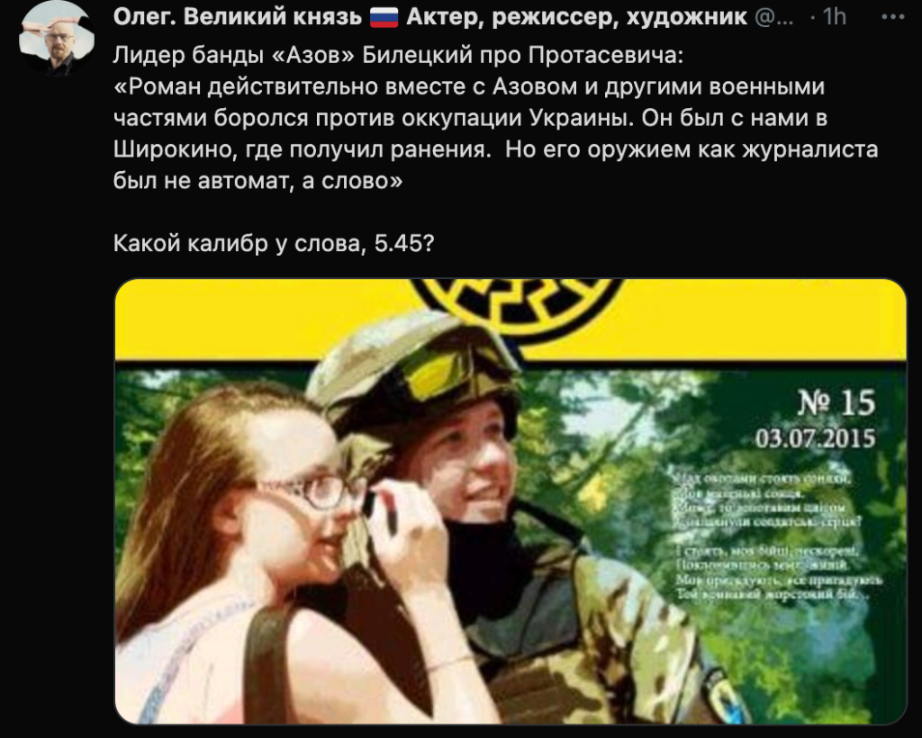 The leader of the Azov gang, Biletskiy about Protasevych: “Truly, Roman has fought against the occupation of Ukraine together with Azov and other military units. He was with us in Shirokino, where he was wounded. But his weapon was the word not machinegun.”