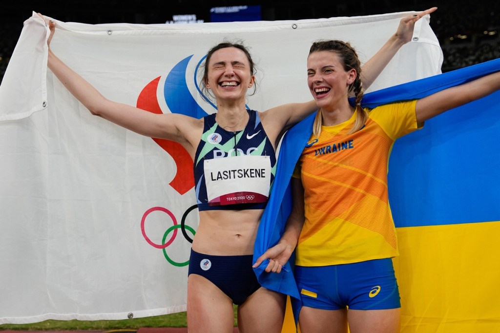 Over the above photo, where the Ukrainian athlete, Yaroslava Maguchikh poses with her Russian competitor, Maria Lasitskene. Lasitskene won gold and Maguchikh won bronze.