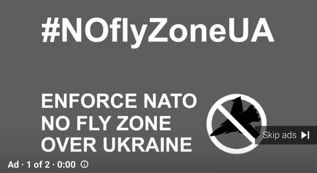 A Ukrainian commercial on YouTube is calling on all Ukrainians around the World of which they say there are 65 million (one only wonders why 65 million Ukrainians don’t live in Ukraine) and any Ukrainians in spirit should protest in all cities of the World and demand a No fly zone over Ukraine. Because apparently Russia wants to take their motherland.