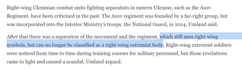 One thought on “Deutsche Welle Says Azov Battalion is No Longer Right Wing Extremist”