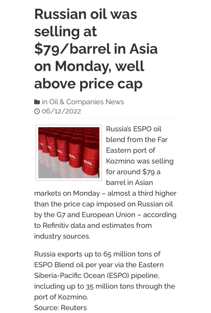 So, my initial reaction in a conversation to EU’s newly rolled out policy of price caps on Russian oil was this: