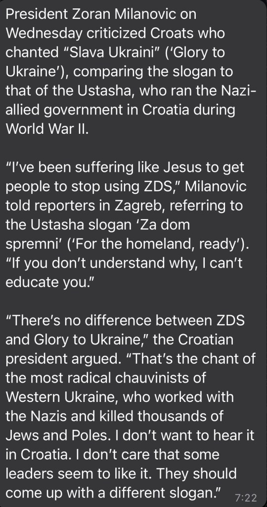 One thought on “The Croatian President: “Slava Ukrayini” is a Fascist Slogan”