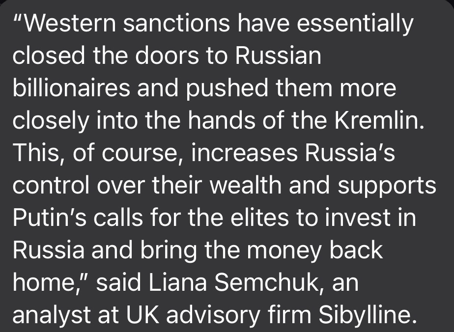 PS: I have covered the issue of sanctions against wealthy Russian nationals before. But in that case it was legacy oligarchs that moved their assets to the United Kingdom, only to be robbed.