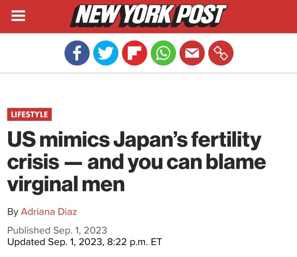 Because any article discussing birth rates must involve blaming women, and blaming women, holding women accountable, is misogyny. And the girls today are well trained to react viciously against any such mentions. And accusations of misogyny could spook the advertisers…