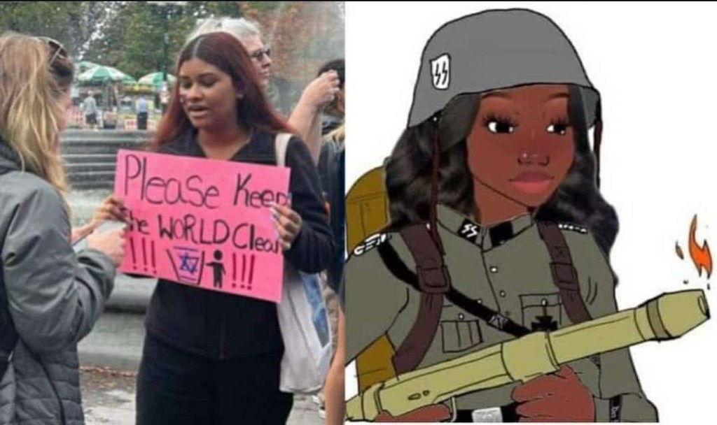 Cursed images of girls that chose to carry bad taste paraphernalia to pro-Palestine protest…