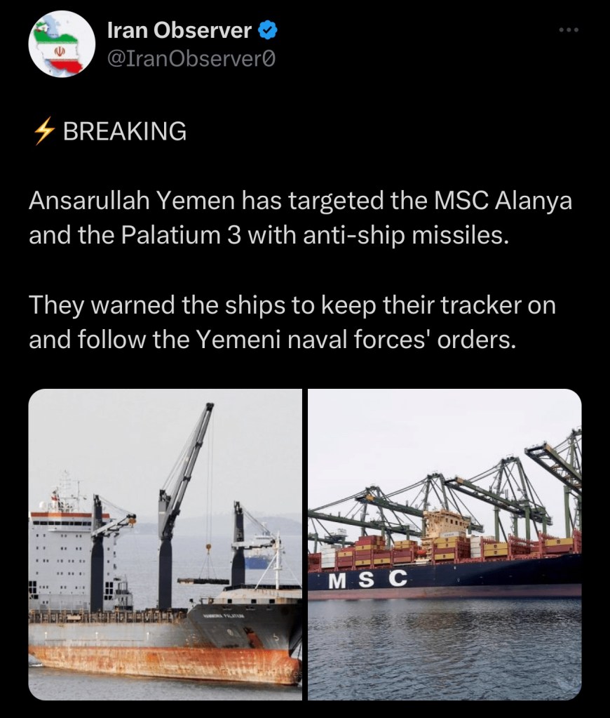 Yemeni Houthis Attack Ships Bound for Israel insomniacresurrected Curiosities 15th Dec 202315th Dec 2023 1 Minute Pirates of the Red Sea… Share this: Click to share on X (Opens in new window) X Click to share on Facebook (Opens in new window) Facebook Like Loading... Published by insomniacresurrected View all posts by insomniacresurrected Published 15th Dec 202315th Dec 2023