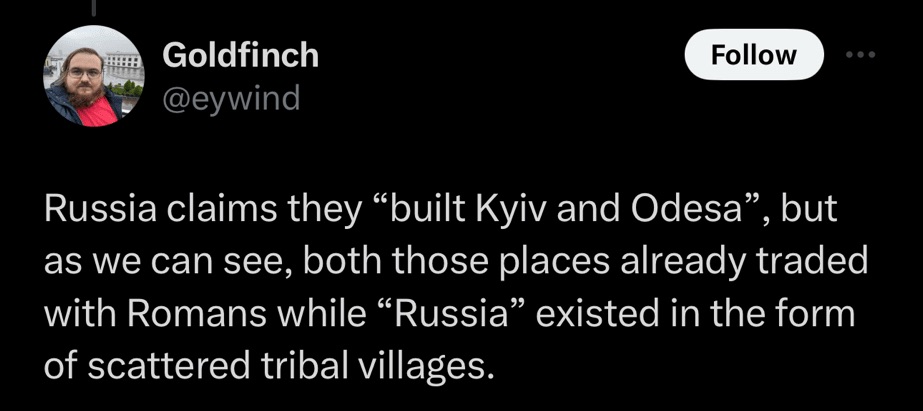 Is this even worth replying to. This creature mixes hardly related periods of time. The Roman Empire, Kievan Rus, which happened like 5-6 hundred years later and eighteenth century, the founding of Odessa. This is absolutely demented…