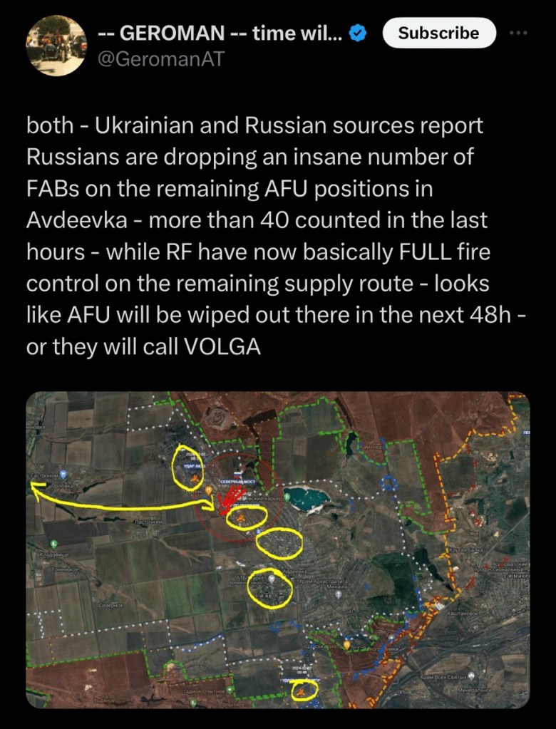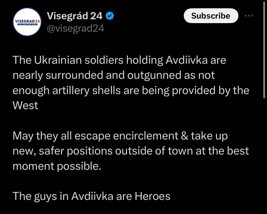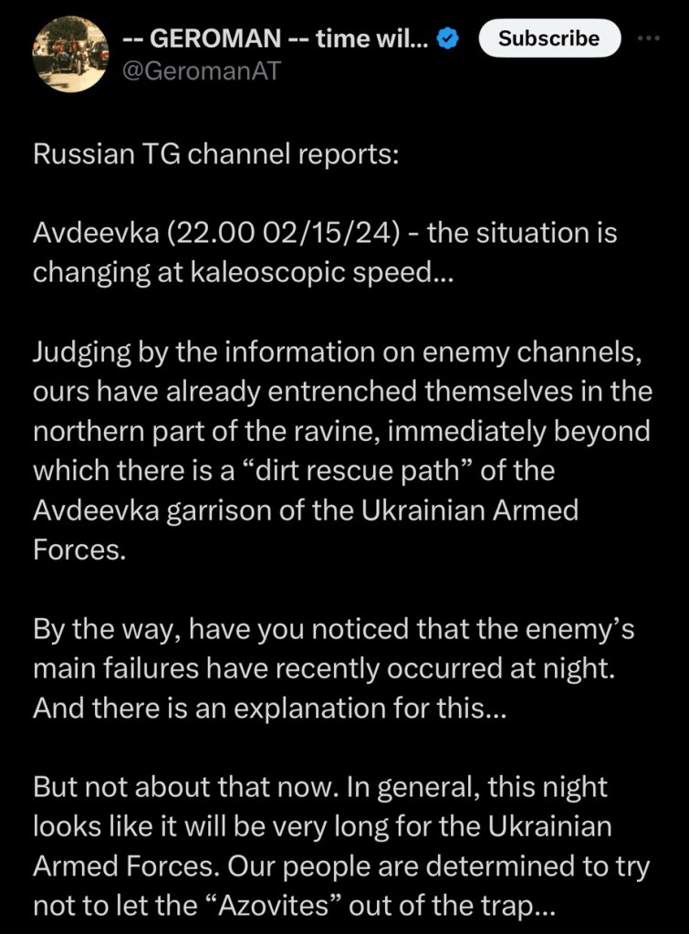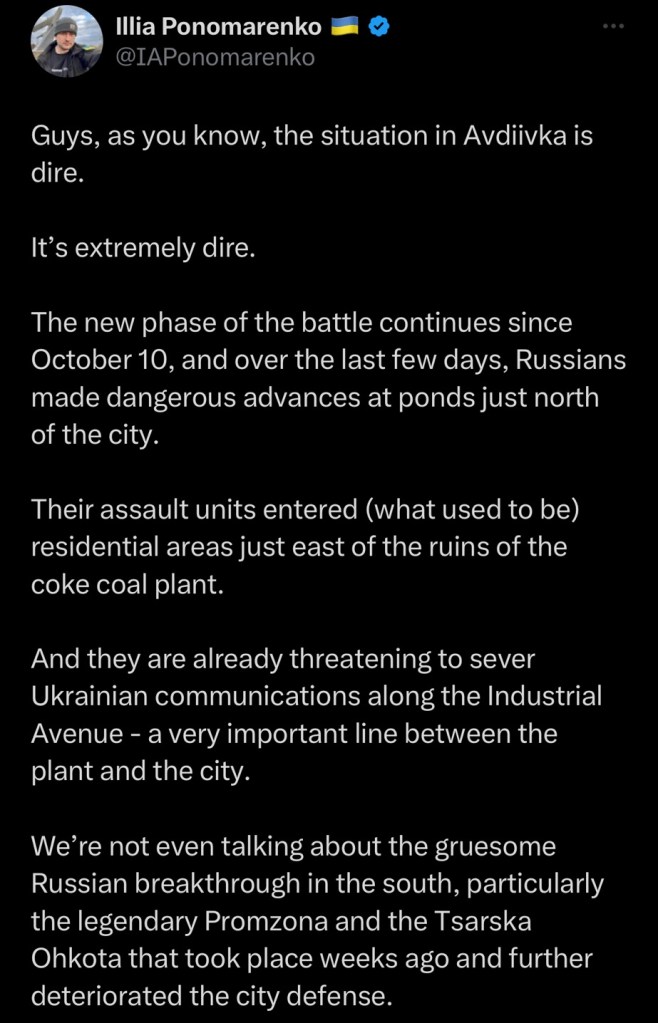 I wrote a lot about the necessity of reinforcing Avdeevka with men and arms, and I was telling everyone about this scenario.