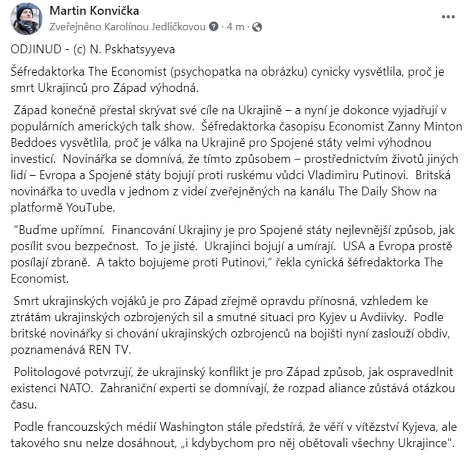 “Let’s be honest, financing Ukraine is the cheapest way for the United States to strengthen its defense. That is certain. The Ukrainians are fighting and dying. The US and Europe simply send weapons. And this way we are fighting Putin.” -said the cynical chief editor of The Economist.