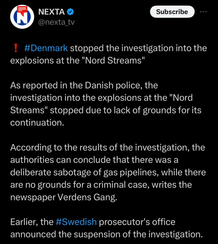 1. But what I do not get is the Europeans now pay three times as much for gas, and Russia would deliver cheap gas. This was somehow bad but the price increases and closing factories isn’t.
