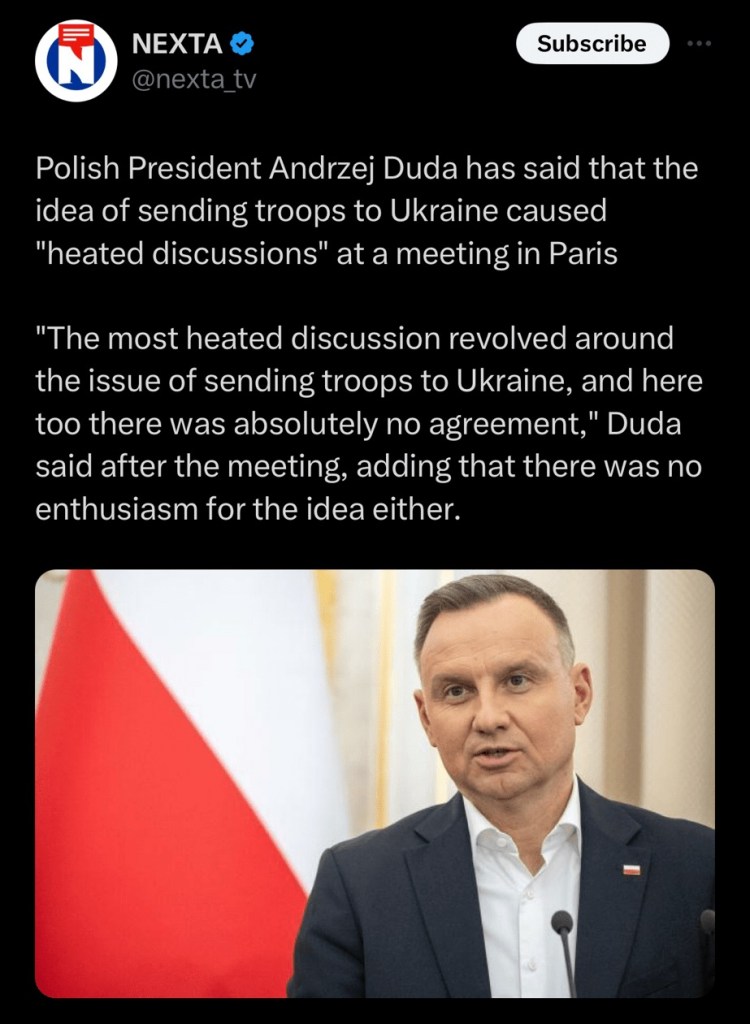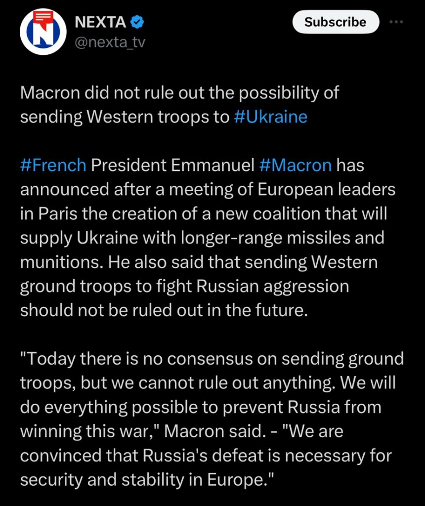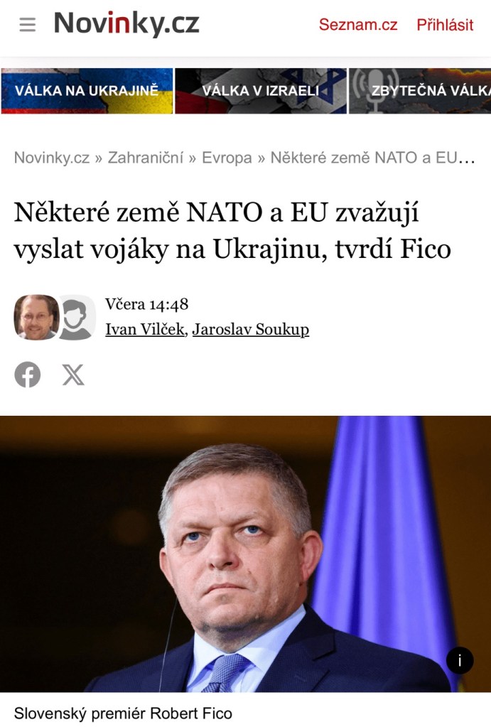 Fico kind a warned that some EU and NATO countries threaten to send in the troops. He also said in one of the videos I watched that the EU does not have any other plan in Ukraine than to fight to the last Ukrainian. But what if we run out of Ukrainians?