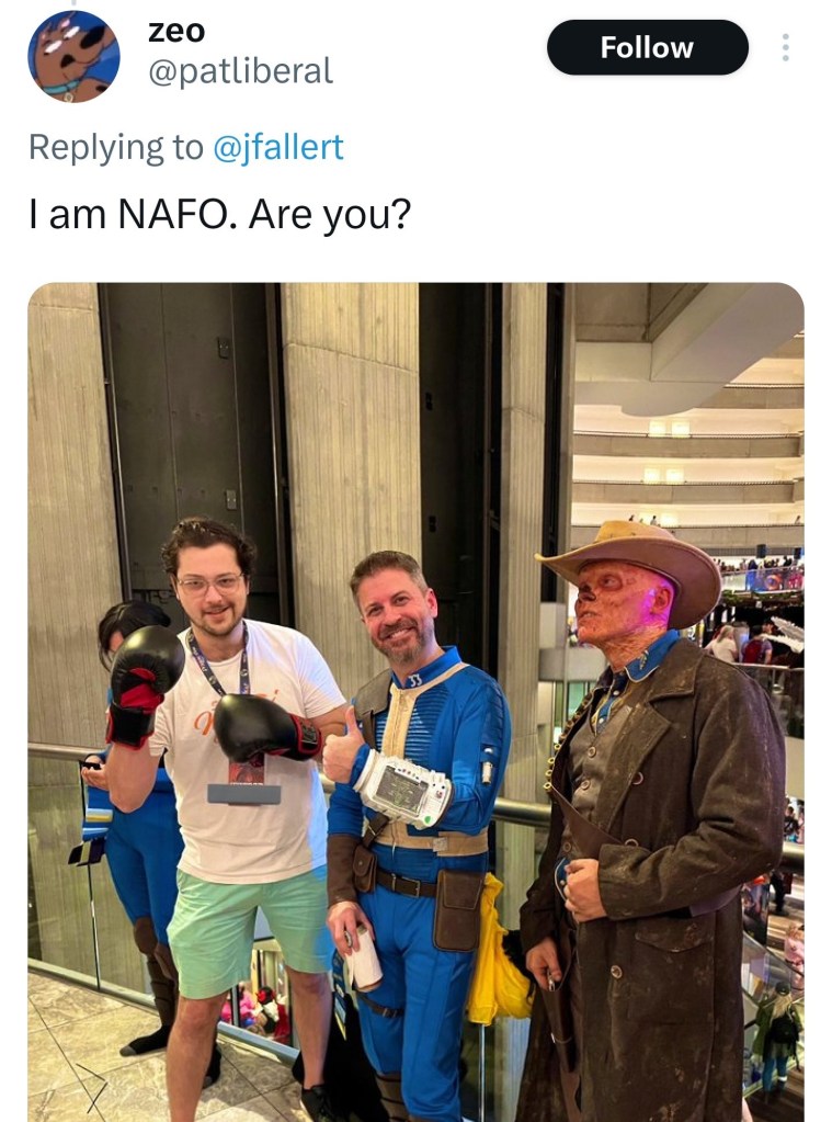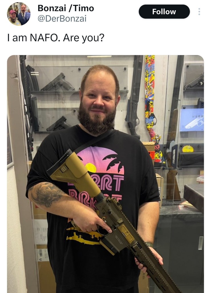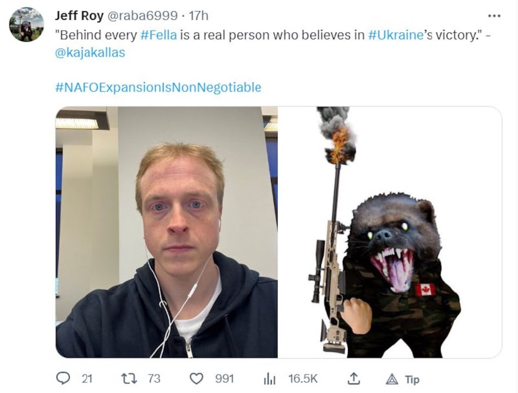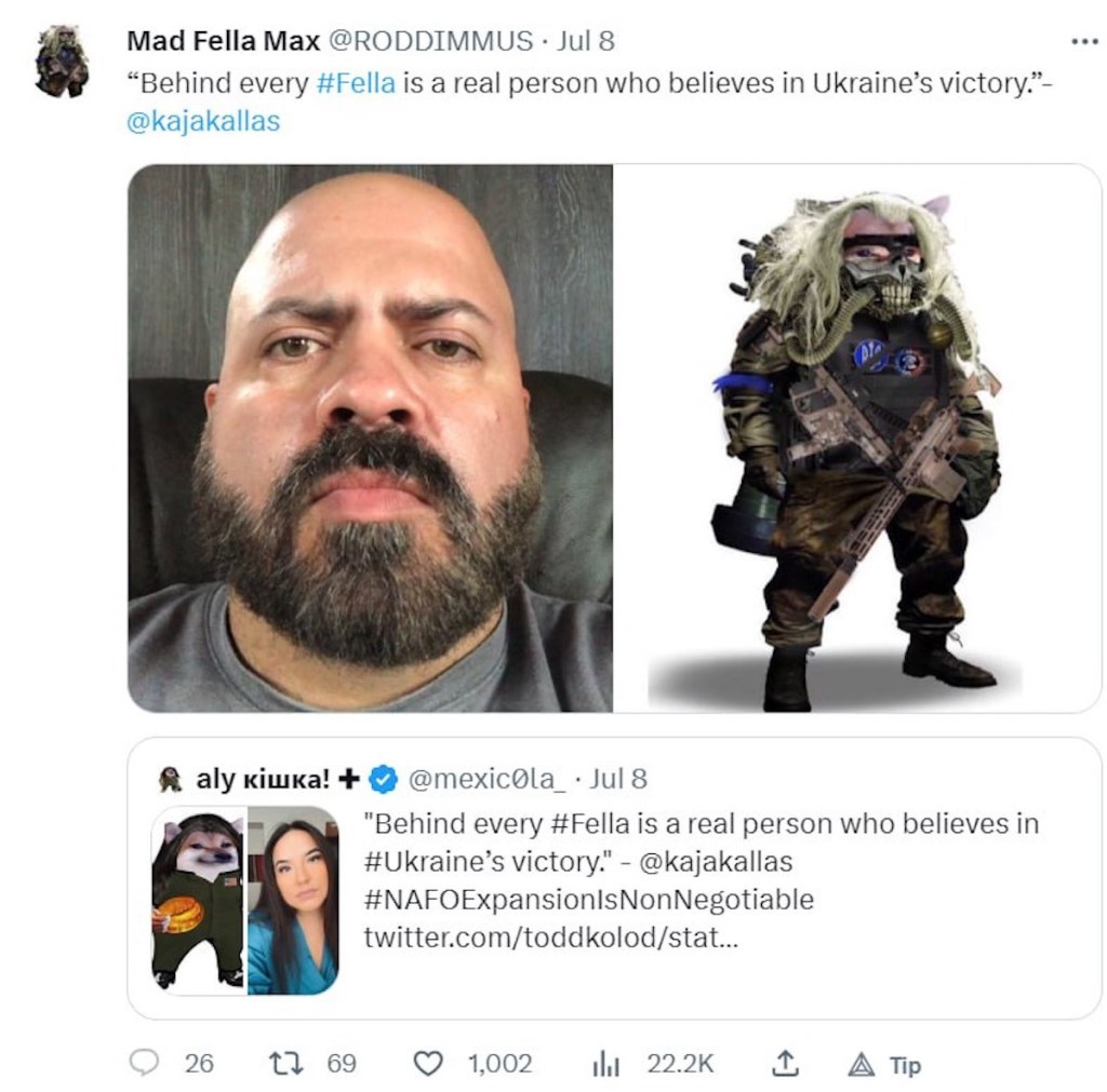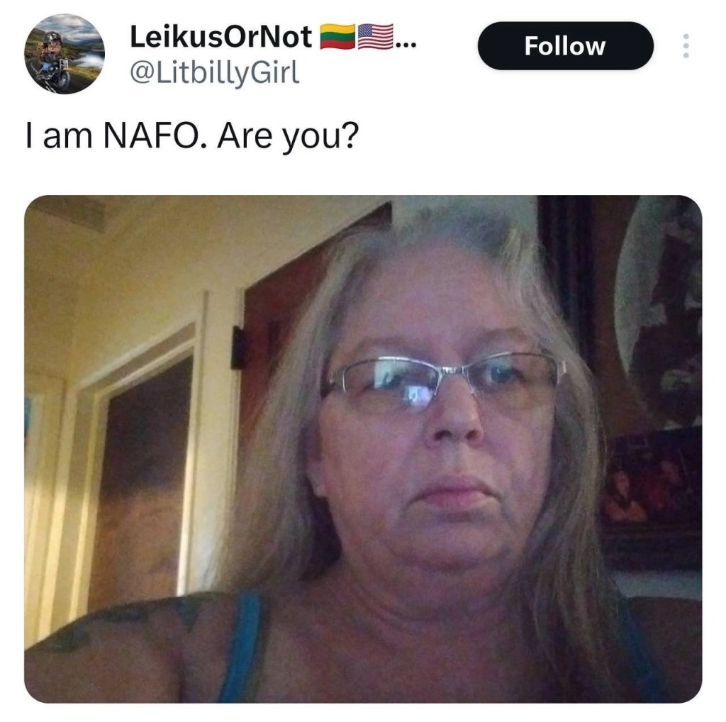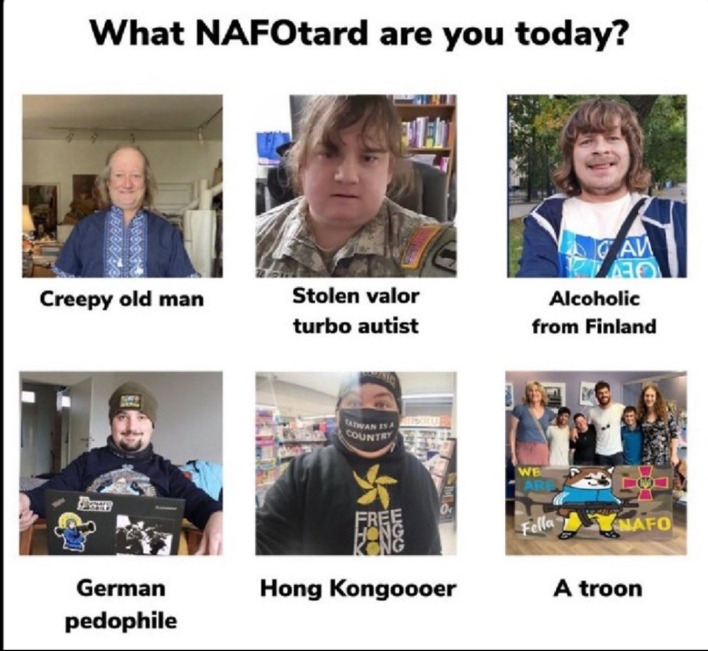 These are real people, and they look like those in the photos. NAFO was created by some Lithuanian dork and spread like AIDS through soy tubes.