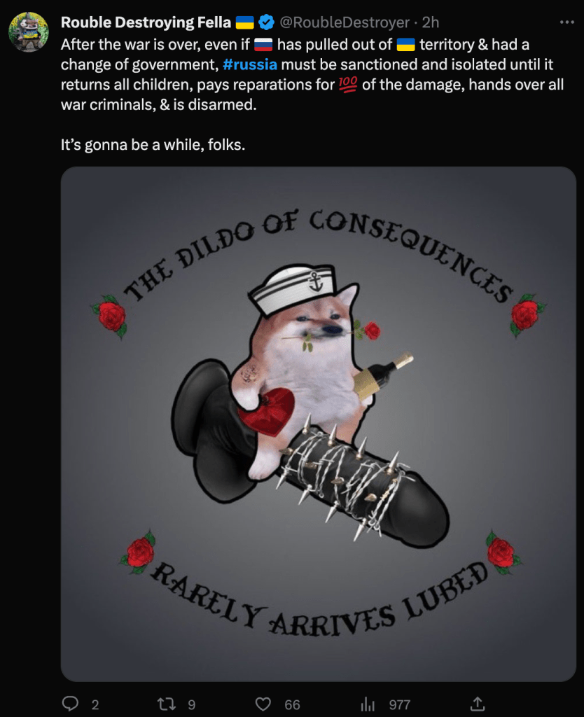 Kinda reminds me of when Jakub Janda called for harder sanctions. Also my suspicions that NAFO trolls seem to be soycucks and obese women only finds confirmation.