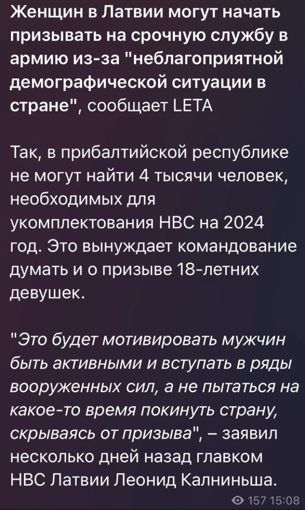Women in Latvia might be subject to draft because of unfavorable demographic situation.