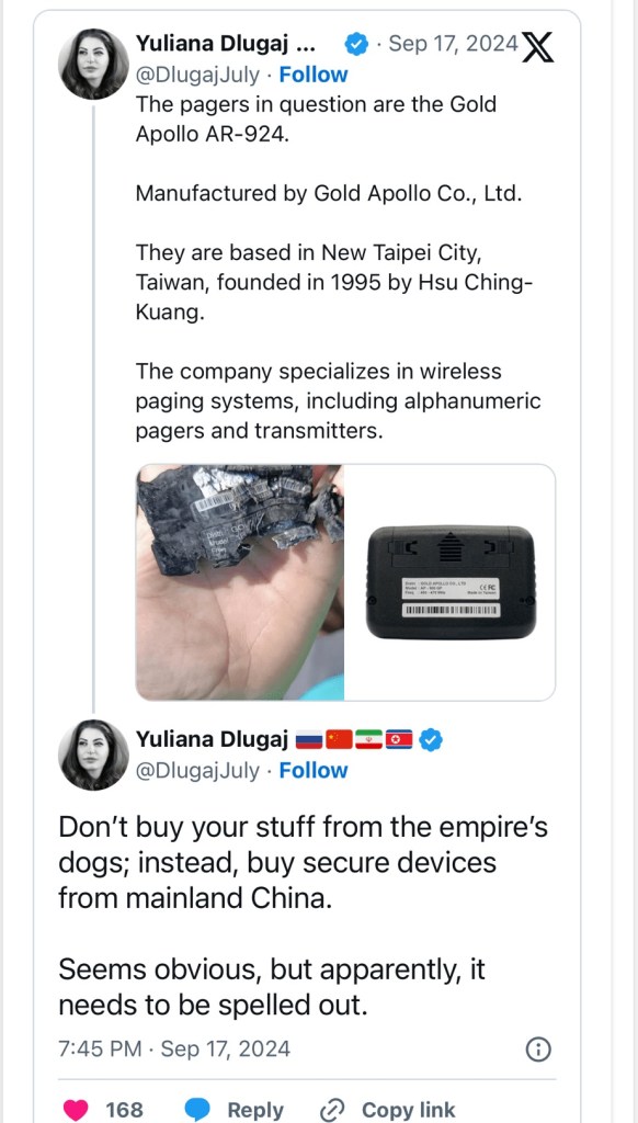 The Zionists have concocted a terror attack on the people of Lebanon by planting explosives in pagers. This ain’t no laughing matter, this kills civilians, this is a terror attack. Israel is a terrorist state.