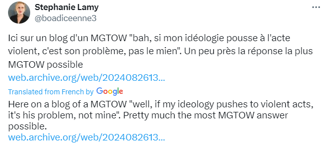 The Most MGTOW Answer insomniacresurrected Life Hacks 2nd Oct 2024 1 Minute 🤣 Stephany Lamy has noticed my post about her… Share this: Click to share on X (Opens in new window) X Click to share on Facebook (Opens in new window) Facebook Like Loading... Published by insomniacresurrected View all posts by insomniacresurrected Published 2nd Oct 2024