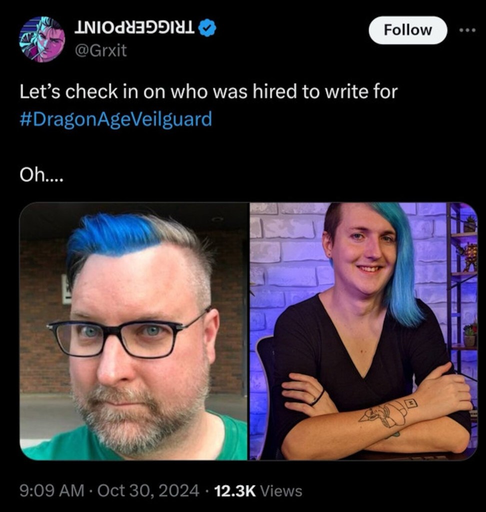 Veilguard insomniacresurrected Cursed Images 3rd Nov 2024 1 Minute 2024 is a year of shitty woke games… Share this: Click to share on X (Opens in new window) X Click to share on Facebook (Opens in new window) Facebook Like Loading... Published by insomniacresurrected View all posts by insomniacresurrected Published 3rd Nov 2024