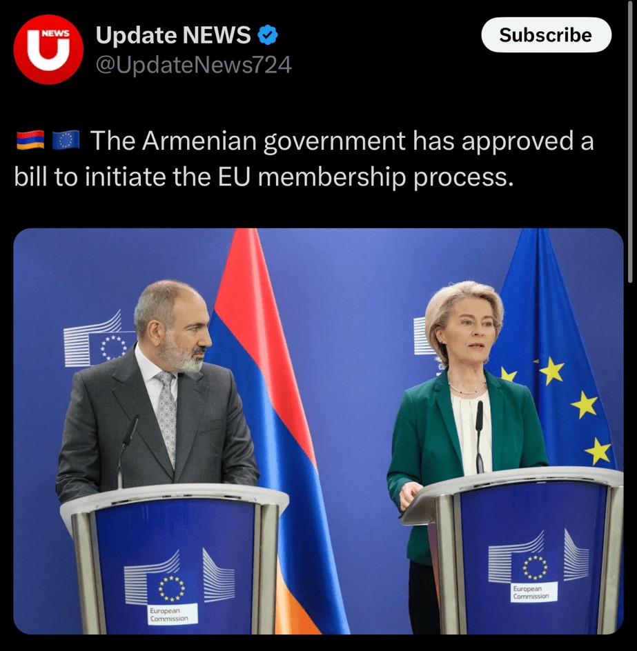 The Soros funded government of Armenia declared its intention to join the EU. 𤣠I wonder if there is anyone in Armenia, who points out the silliness of this idea.
