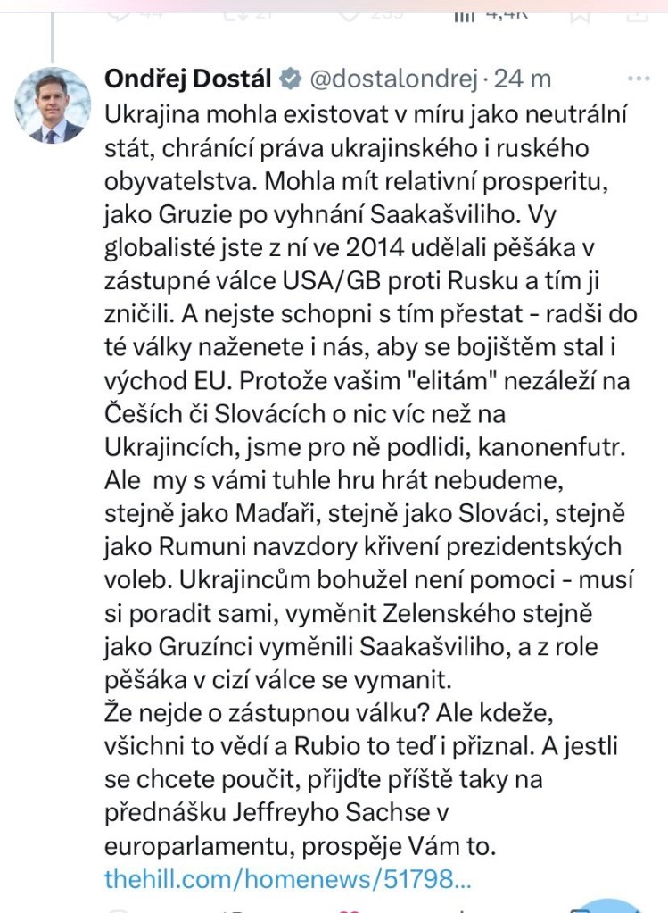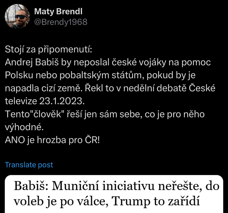 Kdysi tu byl jiný, militantní a zaukrajinský Babiš. Co se stalo? Mára přišel s průzkumy veřejného mínění a rétorika se hned změnila? Ukrové začali prohrávat? Já fakt nevím…
