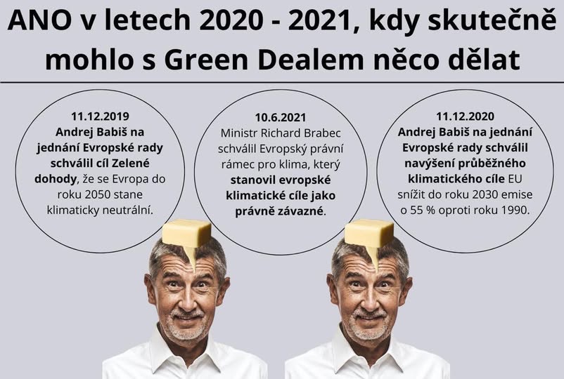 ODS se snaží využít faktu, že Babiš podepsal Green Deal ve své antikampani, ale sami proti Green Dealu nejsou… Obě strany totiž v opozici před volbami GD kritizují, ale u moci podepíšou cokoli a budou tvrdit jak to nejde zrušit.😆