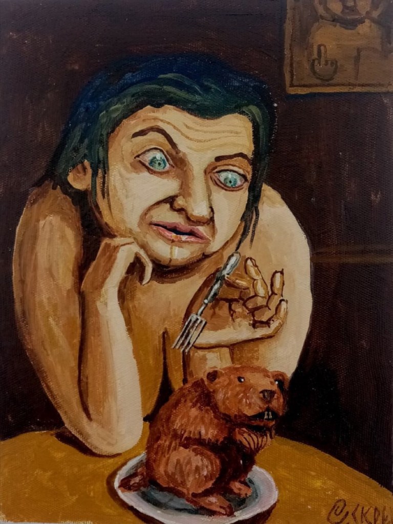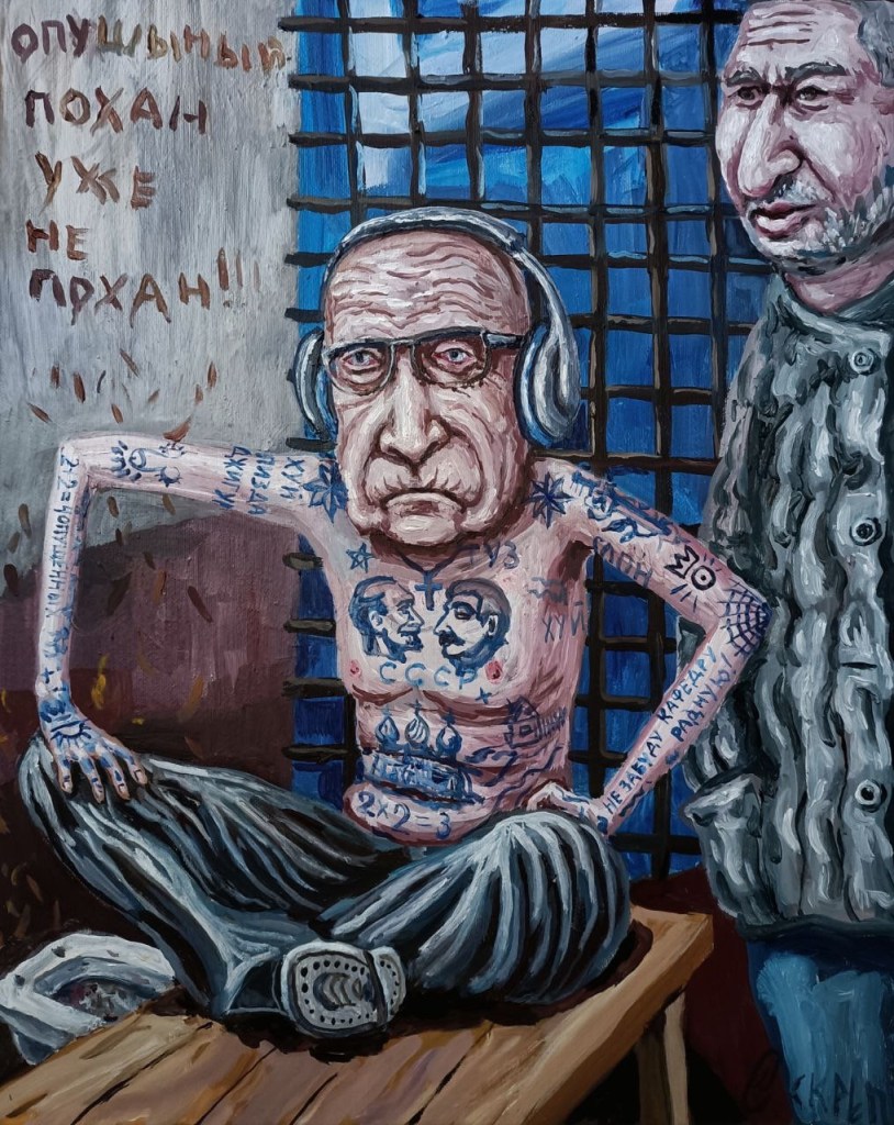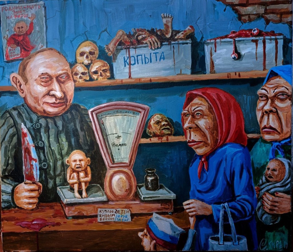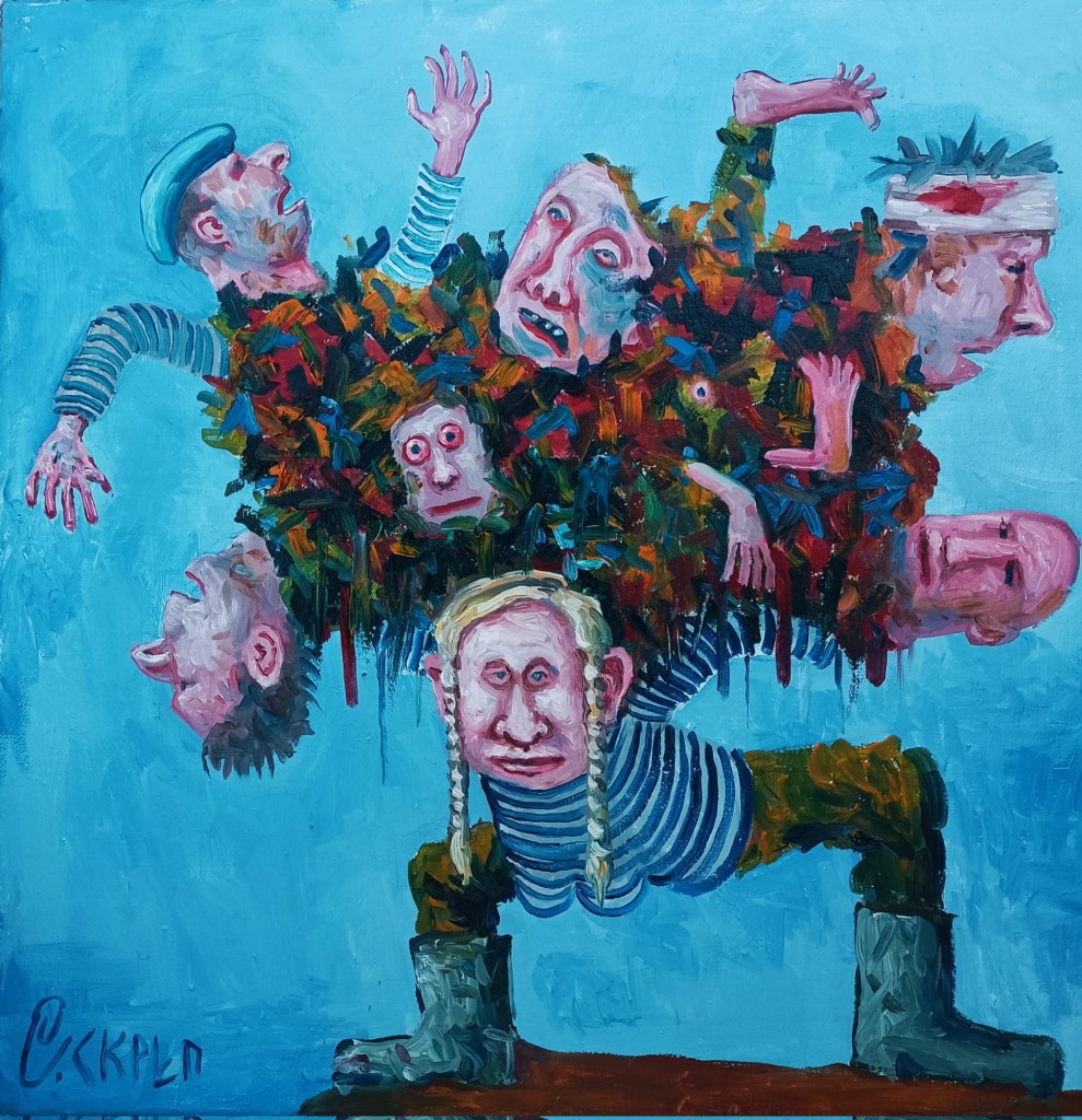 I love the above. You have non-Slavic representatives of Ukrainian business and political establishment (I see Umerov, Kolomoysky and Akhmetov, I don’t know who the other nosey mother fucker is) watching a fight a fight between a guy in a ushanka and a vatnik coat with another who has a shaved head with a knot and wide pants called sharovary. The vatnik clad mother fucker is supposed to symbolize a Russian. And the idiot larping as a Cossack is Ukrainian. Two manlets remaking Zelensky and Putin are urinating on Van’ka and Tarasik. Skrepetsky doesn’t hold love for anyone.