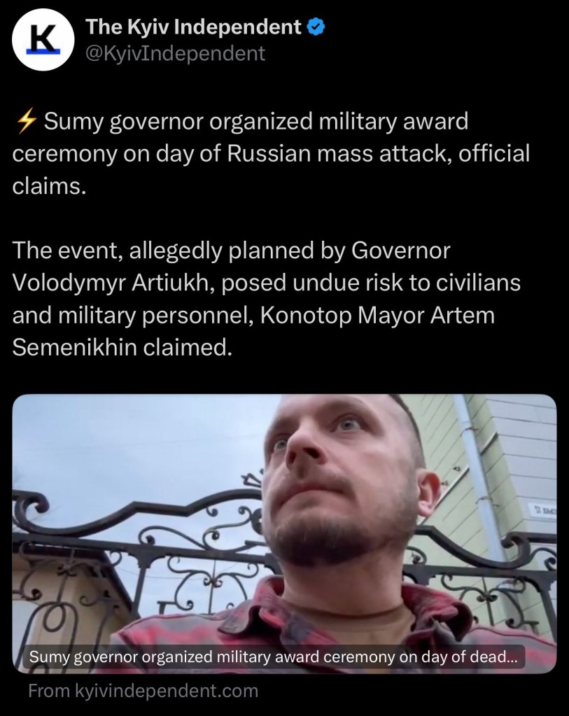 But then reports began surfacing that the Ukrainian military was organizing some award ceremony in Sumy.