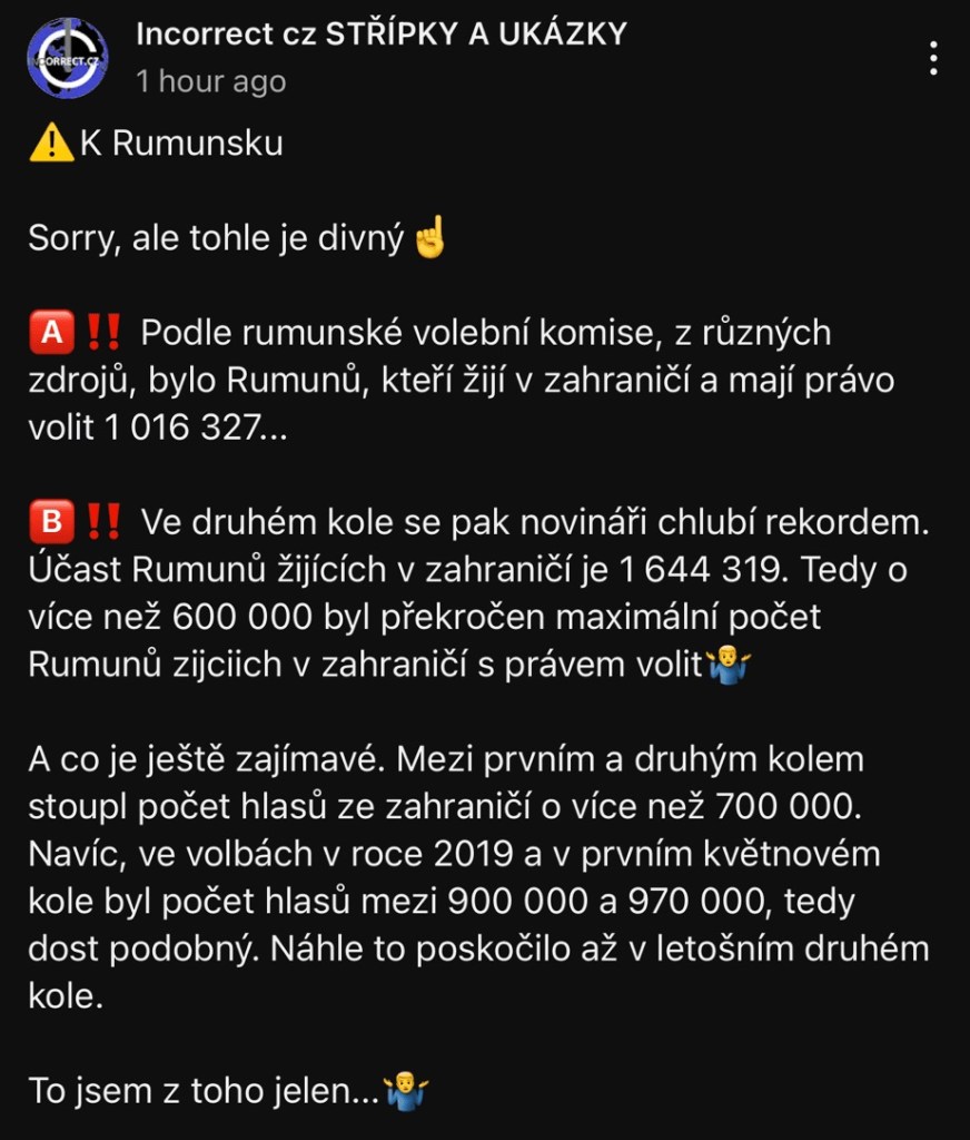 George Simion said he will challenge the results at the constitutional court. Czech media call him far right. 😆👌
