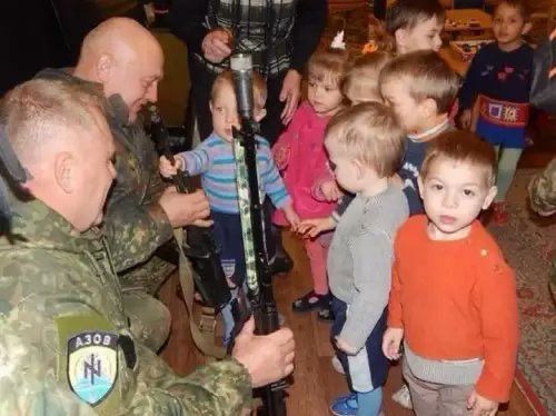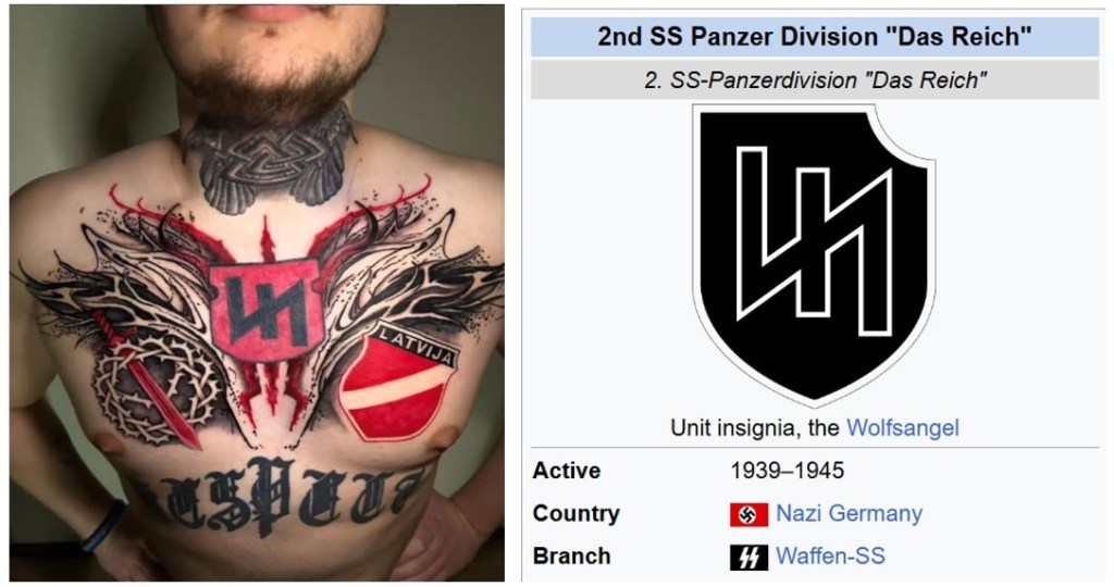 19 year old Russian, who is fighting in the Ukr army has Nazi Germany inspired neck tattoos but that doesn’t stop Ukrainian TV from interviewing him.