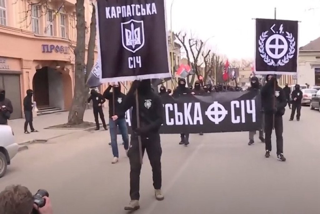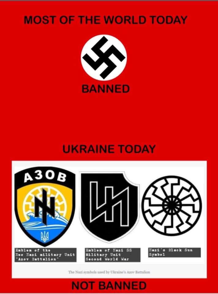 Nazi symbology is actually banned under Ukrainian laws. Such laws are on the books but for some reason nobody gives a fuck.
