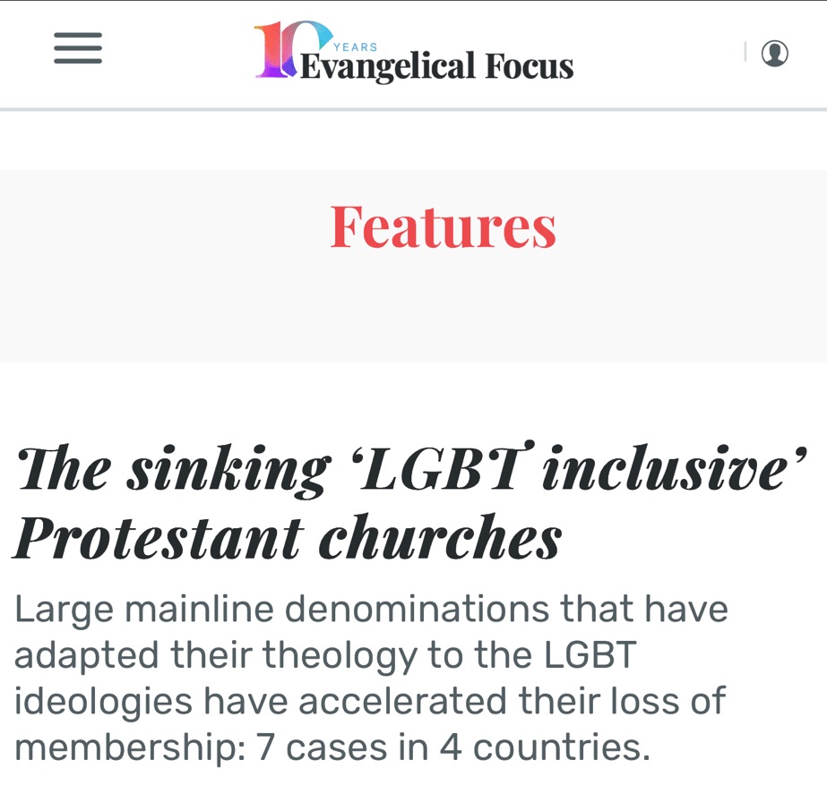 It is obvious that may [many] causes could be included in the analysis of the complex evolution of dying churches, but statistical evidence shows that embracing dominant ideologies in society such as the LGBT agenda is certainly not filling the churches with new believers.