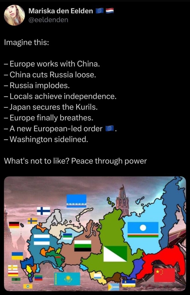 So, Westoids wanna Balkanize Russia and even China to create a set of weak and easily manipulable states with limited sovereignty, whose economy is completely controlled by Western corporations. Siberian Africa or Yellow Africa in the East. Nothing against Africa, Africa also needs to show Westoids the finger.