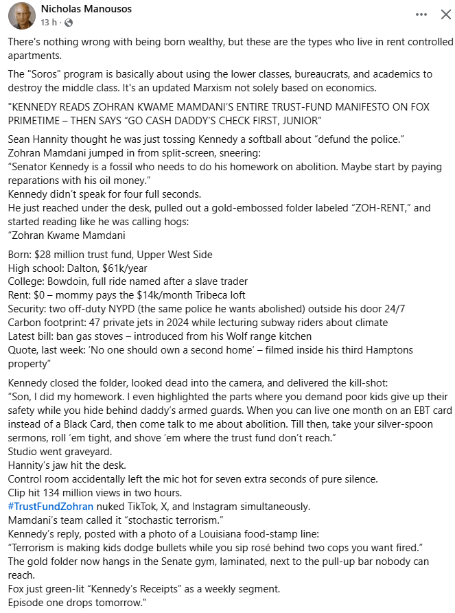 Fuck Mamdani, luxury beliefs, anti-White, Soros funded, pro-criminal, trust fund boy with an ugly wife…