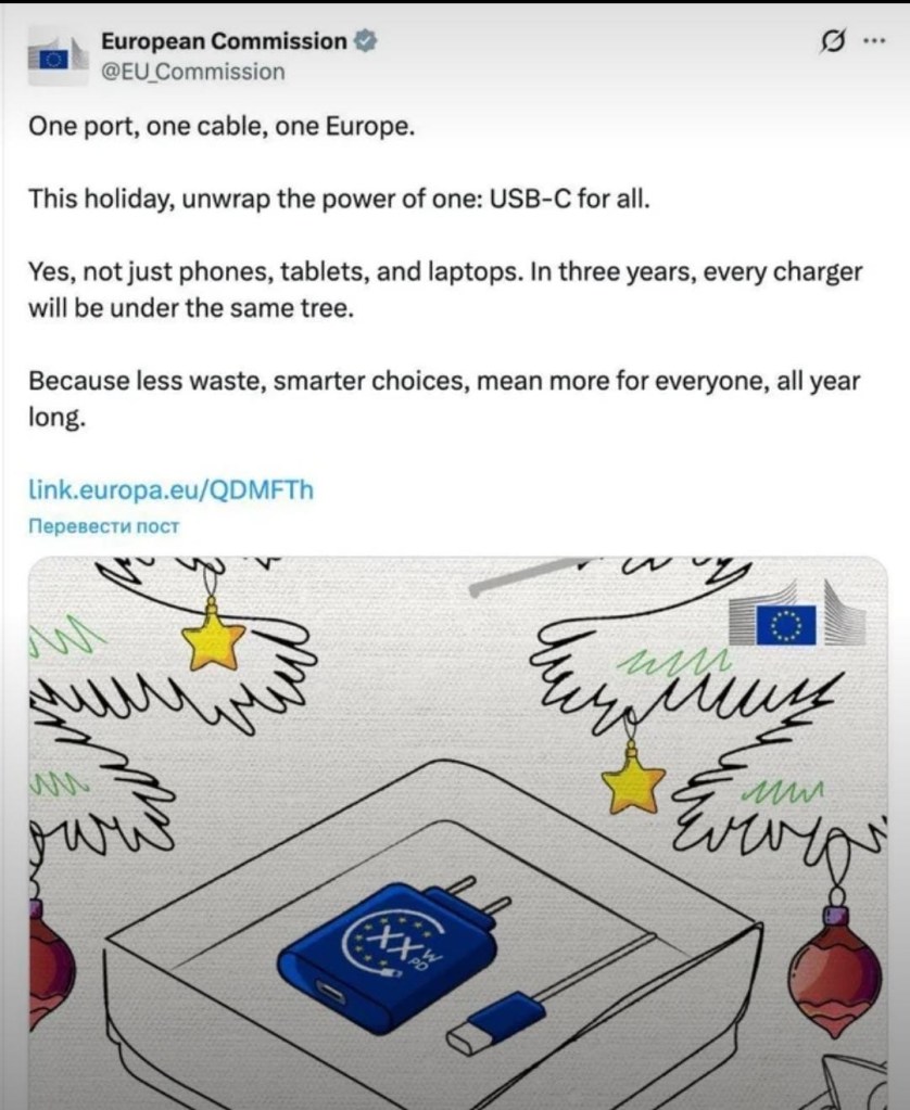 Basically, is USB-C the pinnacle of cable technology? Why do we need the EU to legislate on cables? Why doesn’t the EU have a company equivalent to Apple? Why does the EU only level silly regulations and fines on billion dollar US companies? Why are we celebrating this. None of the giant corporations pay adequate tax on their earnings. Pension funds in the EU nations have huge deficit, and it is only growing as the population is aging. Meanwhile fucking Amazon doesn’t pay any tax. I pay a fucking tax for boomers and single mothers.