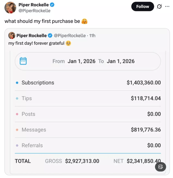 I also think that many dudes that look at this are jealous this young bitch made three times as much as I made in my entire adult life in one fucking day. I know I certainly am. But then again, she deserves it. She has monetized her looks, and what’s wrong with that. I don’t know how much punani she has displayed, some don’t even go there and still make a lot of cash. If she invests it into assets, she is sorted for life. Much better than having all those modern bitches asking you to pay their student loans or sugar daddy allowance, this bitch has some serious adult money now. Why do you not support women making money? Are you some kind of a conservative bigot?