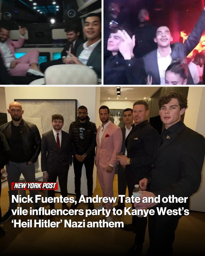 Kanye got nuts because crazy bitch Kim Kardashian took away his kids, and he is a cuck. And mystery mutts Fuentes et alia are trotting to his song. Brutal timeline, fucking surreal. Fuentes seems to only enjoy the Nigga song but he seems like he is suffering in the rest of the images. Definitely not his environment.