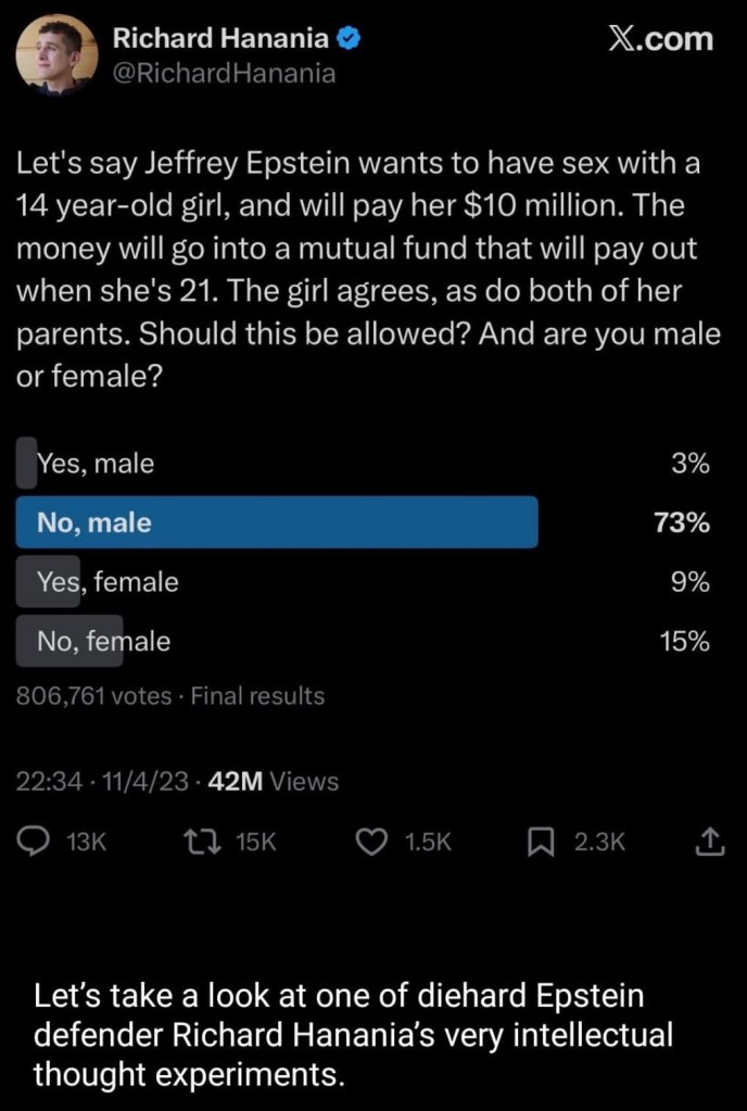 Basically, the idea above is that the age of consent is arbitrary. I had a sex with a 14 year old girl when I was 16. Women at this age are completely able to consent to sex, and the age of consent is rather arbitrary. Some young chicks are even making money on giving the box to old dudes, and like Nick Fuentes said, how many of those dudes ask for an ID? I think in Japan the age of consent was 12 as long as both parties agree. šš