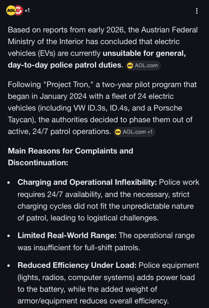 The Austrian police tested electric vehicles and came to the conclusion that EVs might be an evolutionary dead end.