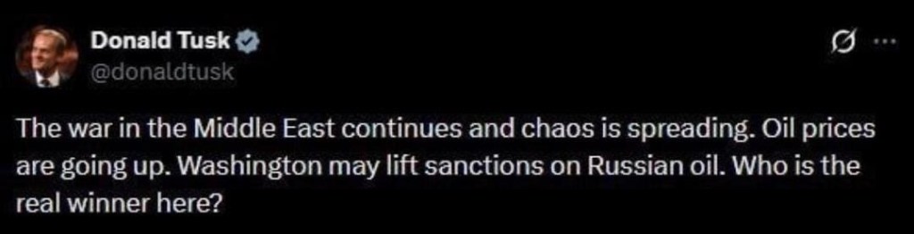 With the Hormuz strait closed, the Indians are buying Russian oil, and Trump has no choice but to allow them for the time being. The winner here is US because now the Americans will supply Europe, and the high price will cover the costs of American shale producers. 😆👌