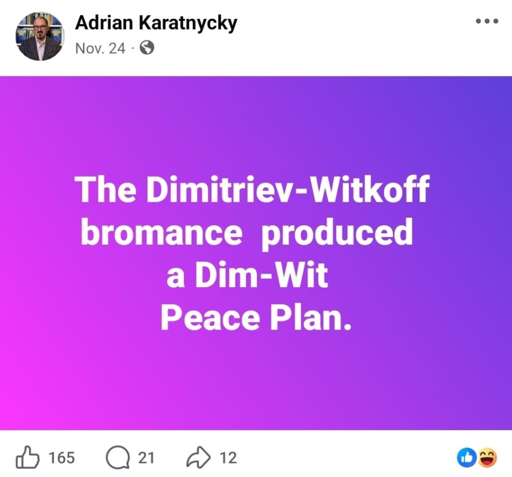 Sitting safely in Canada and the United States, these gentlemen are laughing at Trump’s efforts to bring peace to Ukraine.