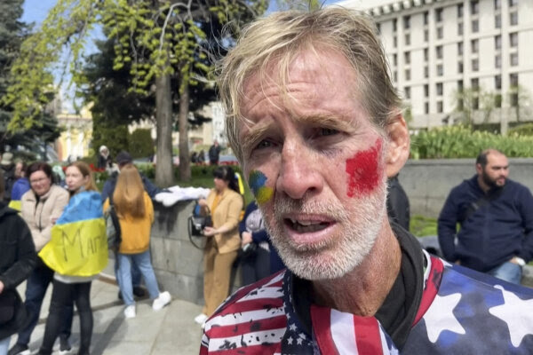TOPSHOT – This screengrab taken from AFPTV on September 16, 2024 shows Ryan Wesley Routh speaking during an interview at a rally to urge foreign leaders and international organisations to help provide humanitarian corridors for the evacuation of civilians and Ukrainian servicemen from Mariupol in central Kyiv on April 27, 2022, amid Russia’s invasion of Ukraine. US media said it was Routh, 58, who was arrested after US Secret Service agents “opened fire on a gunman” carrying an AK-47 style rifle near the boundary of Donald Trump’s Florida golf course where the former president was golfing on September 15, 2024. (Photo by AFPTV / AFP) (Photo by -/AFPTV/AFP via Getty Images)