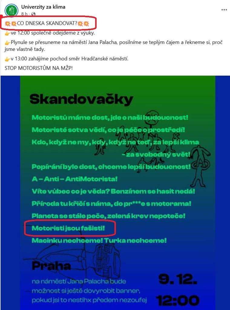 So guys, we in Czechia have a new government forming and part of that government is the Motorists to themselves party. This is a party created in reaction to the Green Transition, they want their gasoline cars, and they should be getting the Ministry of Environment and the Ministry of Foreign Affairs. There is a heavy campaign against them. Here students of the Masaryk University came out in force and it generated some nice batch of cursed imagery…