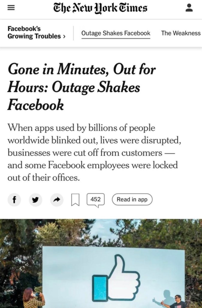 Yesterday, Facebook and other related services when out for like 6 hours. And it was beautiful. Why does New York Times present this as a tragedy?