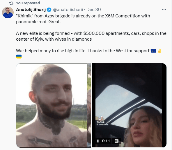 These are just three top posts from Dolinsky’s X. Seriously, whatever the problems with Neonaziism in Russia, Russia comes nowhere close to this rehabilitation of Naziism. In fact, the glorification of Nazi collaboration is explicitly banned in Russia. This is not to say that Rusich, the group Milchakov leads are not Nazis, they are. They are a Russian version of Azov and even attracts Neonazis from other countries.
