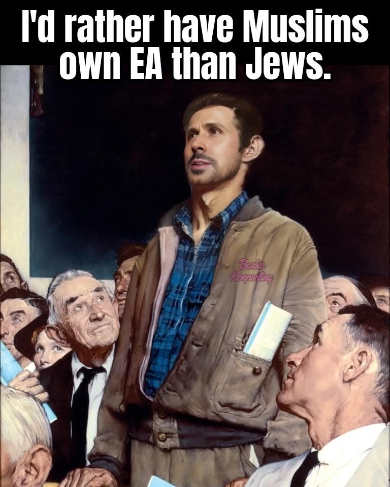 Everybody is acting like the Taliban just bought a major game development company. All you can hope is these billionaire interests will not push woke on your goyim asses. Otherwise EA was known for creating slop like football simulators. They recently lost their FIFA license I heard.