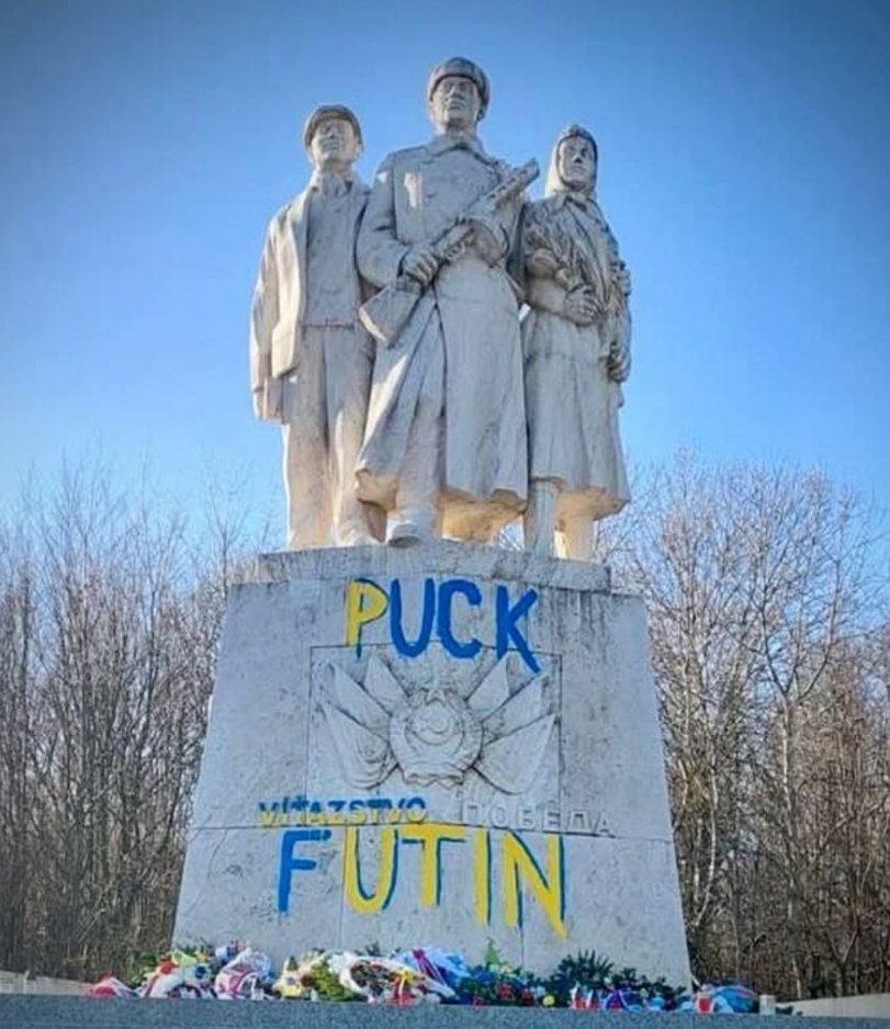 It was defaced by pro-Ukrainian scum. Thousands of Soviets, many of them Ukrainians died liberating Czechoslovakia. The “often political rather than biological” descendants of Ukrainian Nazi collaborators and their demented neoliberal supporters vandalize and remove the memory of this sacrifice.