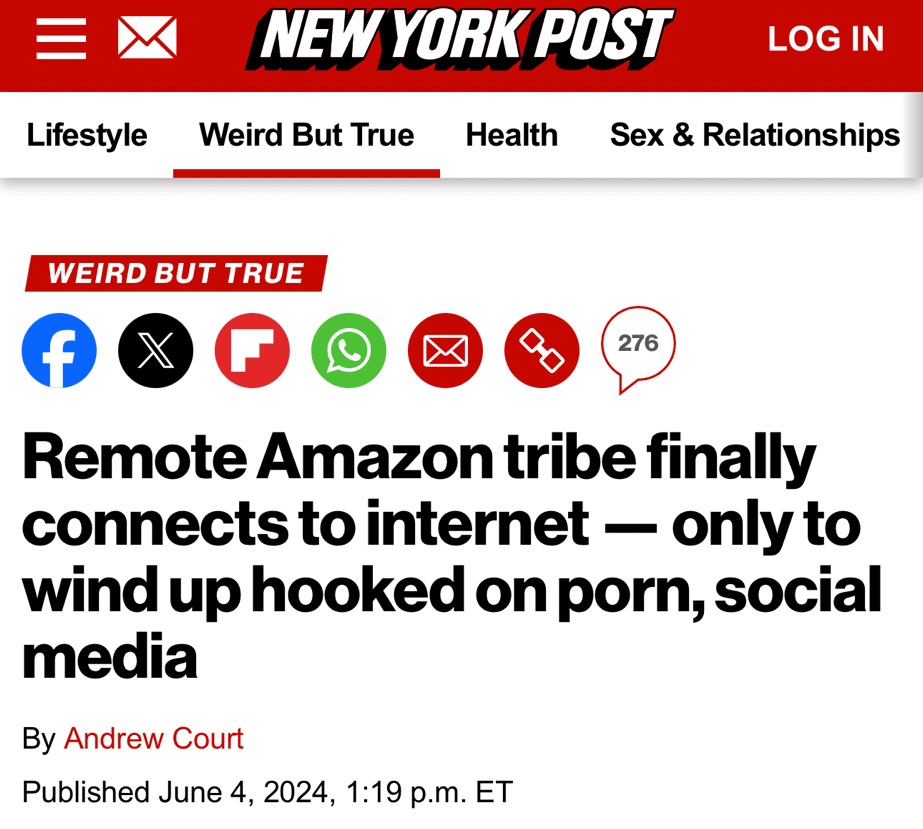 Why do people that live in straw huts, with bones in their noses need the internet? Who thought this is a a good idea? Isn’t it enough that TikTok is frying the brains of kids in our late capitalist dystopia?